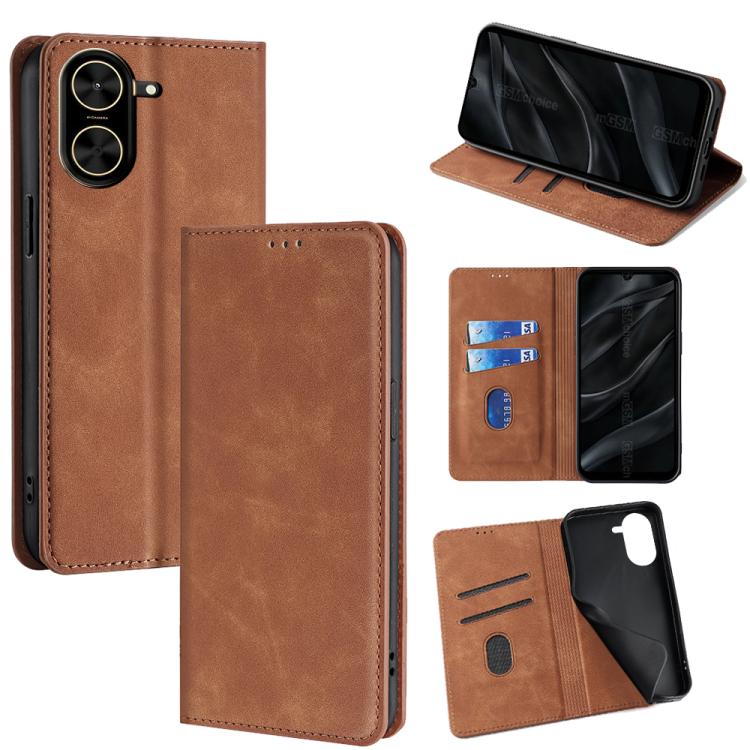 Funda de cuero magnética con textura de piel para Redmi A5 4G (171,7 mm) (marrón claro)