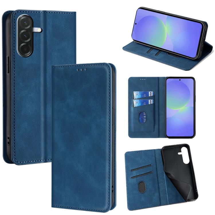 Funda de cuero magnética con textura de piel para Samsung Galaxy A36 5G (azul)