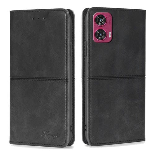 Funda de Cuero Magnética con Textura de Vaca para Motorola Edge 50 Fusion 5G (Negra)