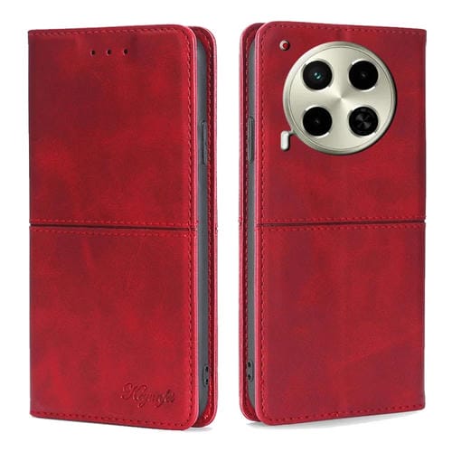 Funda de Cuero Magnética con Textura de Vaca para Teléfono Tecno Camon 30 (Rojo)