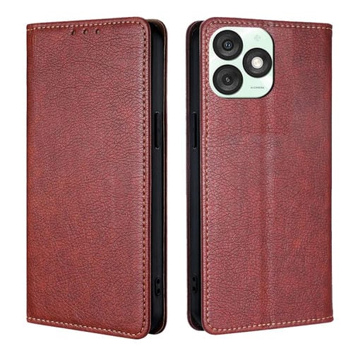 Funda de Cuero Magnética para Teléfono Itel A50 4G (Marrón) con Acabado Brillante