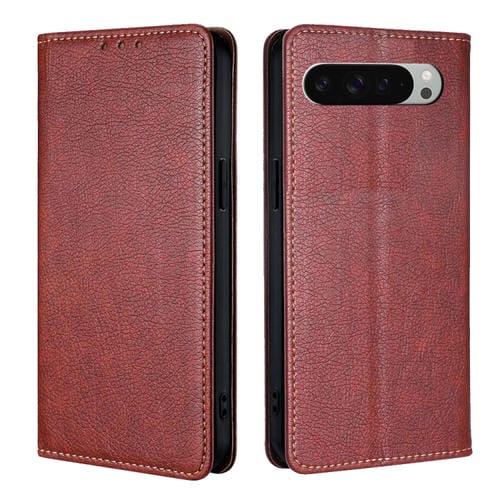 Funda de Cuero Magnética para Google Pixel 9 Pro XL con Acabado Brillante y Aceite Sólido (Marrón)