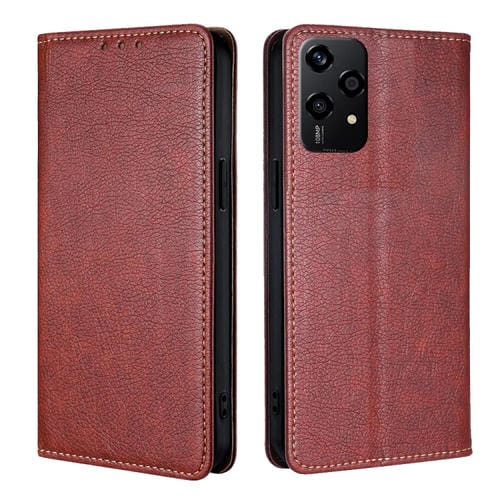 Funda de Cuero Magnética para Honor 200 Lite 5G (Marrón) con Acabado Brillante