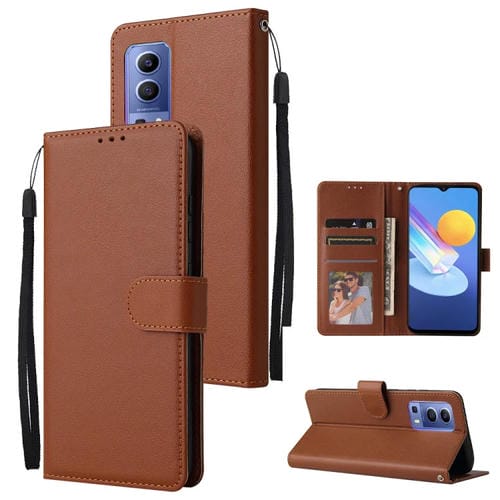 Funda de Cuero Multifuncional para Teléfono con 3 Ranuras para Tarjetas para Vivo Y72 5G (Marrón)