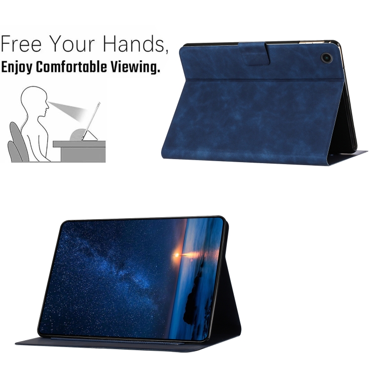 Funda de Cuero para Tablet Samsung Galaxy Tab A9 Diseño de Gato En Relieve (Azul)