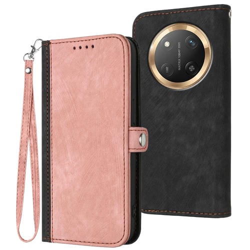 Funda de Cuero para Honor X9C Global con Correa de Mano y Doble Pliegue con Hebilla Lateral (Rosa)