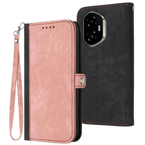 Funda de Cuero para Honor 300 con Correa de Mano y Hebilla Doble Plegable (Rosa)