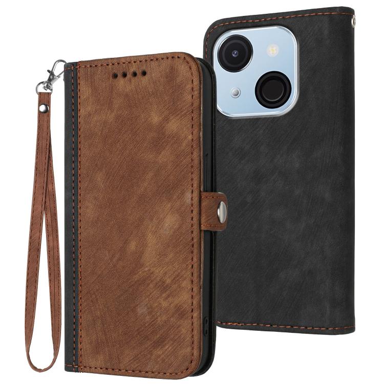 Funda de Cuero para Itel A50C con Correa de Mano y Hebilla Lateral Doble Plegable (Marrón)