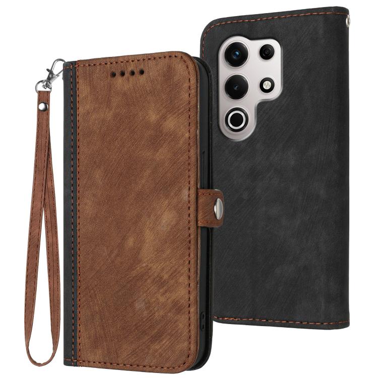 Funda de Cuero para Itel S25 Ultra con Correa de Mano y Hebilla Lateral Doble Plegable (Marrón)