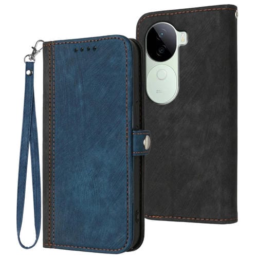Funda de Cuero para Teléfono con Correa de Mano y Hebilla Lateral Doble Plegable para Vivo Iqoo Z9S/V40E (Azul Real)