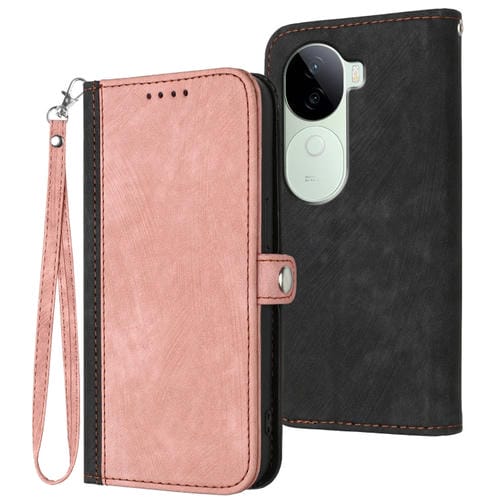 Funda de Cuero para Teléfono con Correa de Mano y Hebilla Lateral Doble Plegable para Vivo Iqoo Z9S/V40E (Rosa)