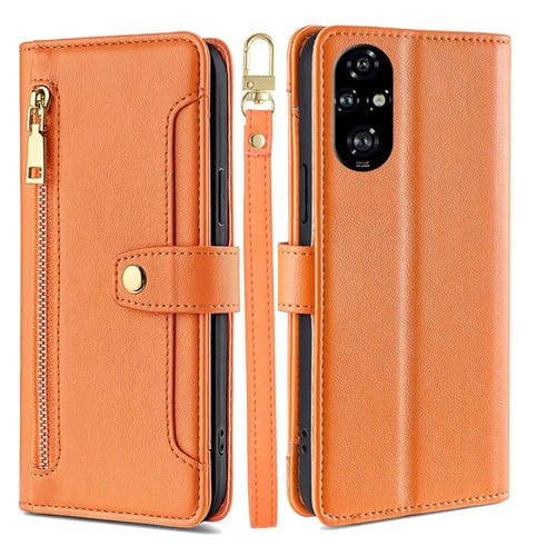 Funda de Cuero para Honor 200 Pro 5G con Cremallera y Diseño Cruzado (Naranja)