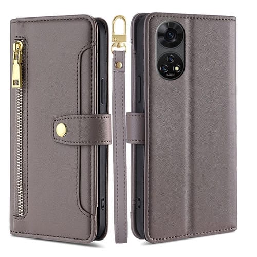 Funda de Cuero para Teléfono ZTE Anshin con Cremallera y Textura de Oveja (Gris)