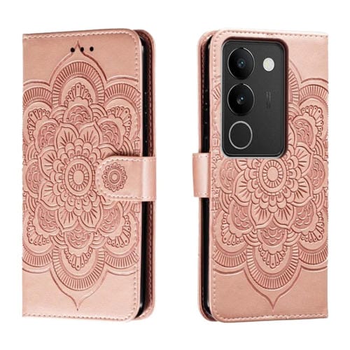 Funda de Cuero para Teléfono con Estampado de Mandala y Sol para Vivo S17 (Oro Rosa)