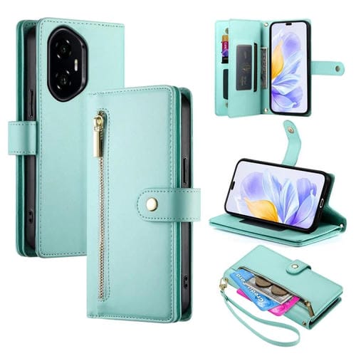 Funda de Cuero para Honor 300 Pro/300 Ultra con 9 Ranuras para Tarjetas y Cremallera (Verde Menta)