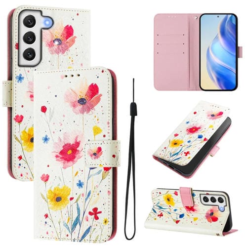 Funda de Cuero Samsung Galaxy S22+ 5G Patrón Dibujo Artístico Flores y Plantas