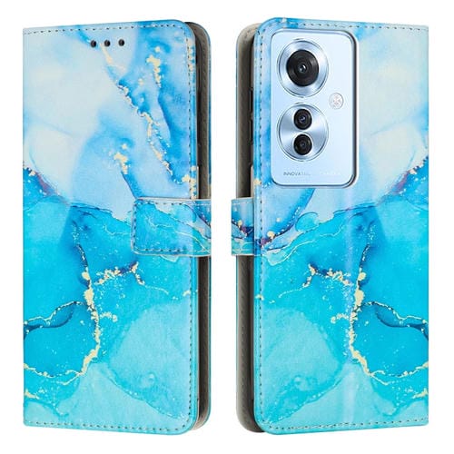 Funda de Cuero para Teléfono con Patrón de Mármol Pintado Global para Oppo Reno11 F (Azul y Verde)