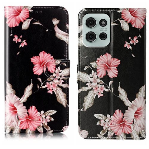 Funda de Cuero para Motorola Moto G75 con Patrón Mármol y Dibujo de Colores (Azalea)