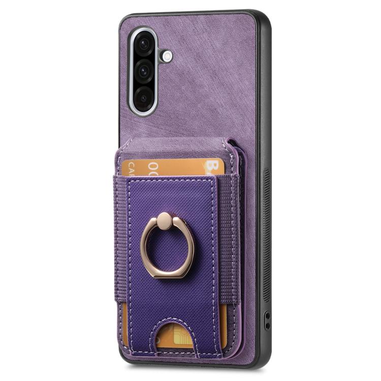 Funda de Cuero para Teléfono Samsung Galaxy A36 con Soporte Magnético Divisible y Tarjetero (Morado)