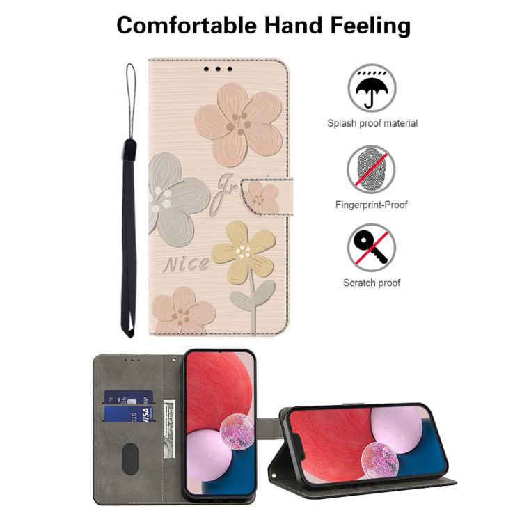 Funda de Cuero Pintada a Mano para Motorola Moto E13 (Flores Beige)