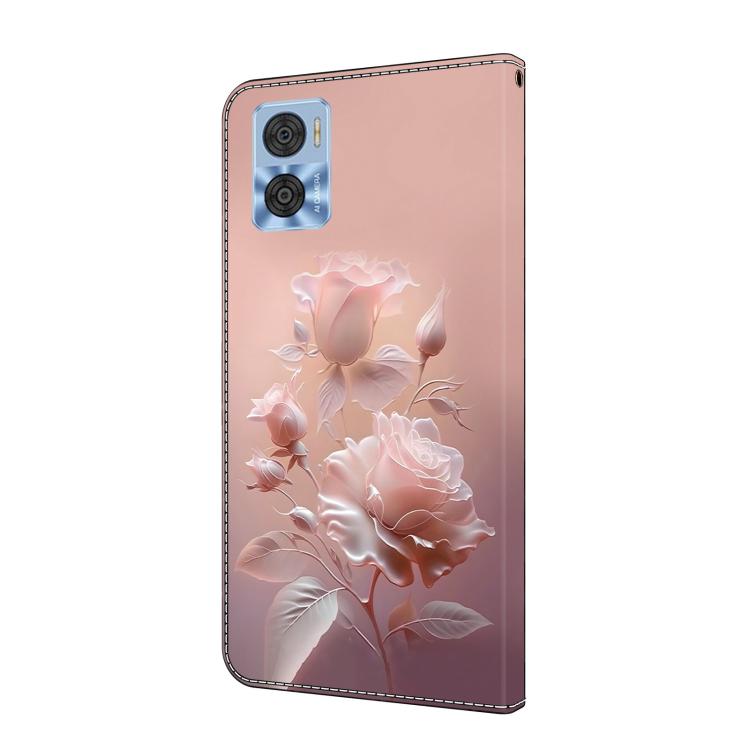 Funda de Cuero Pintada a Mano Motorola Moto E22 con Diseño Flores de Cerámica