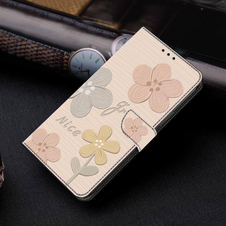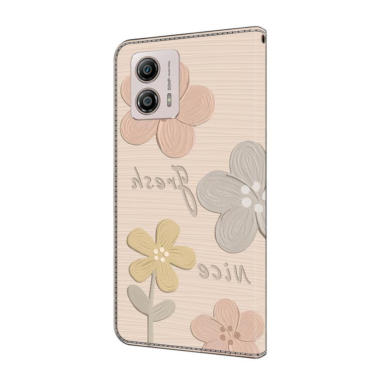 Funda de Cuero Pintada a Mano para Motorola Moto G53 5G (Flores Beige)