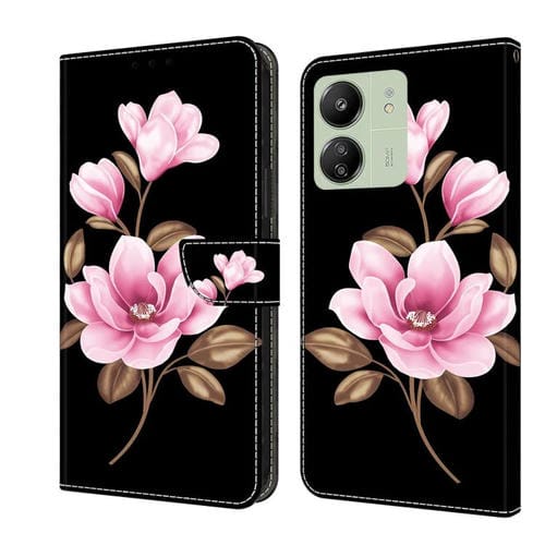 Funda de Cuero Pintada a Mano para Redmi 13C (Flores Negras)