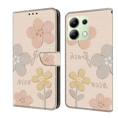 Funda de Cuero Pintada a Mano para Redmi Note 13 4G (Flores Beige)
