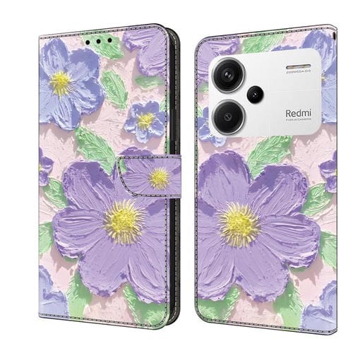 Funda de Cuero Pintada a Mano para Redmi Note 13 Pro+ (Pintura al Óleo de Flores Moradas)