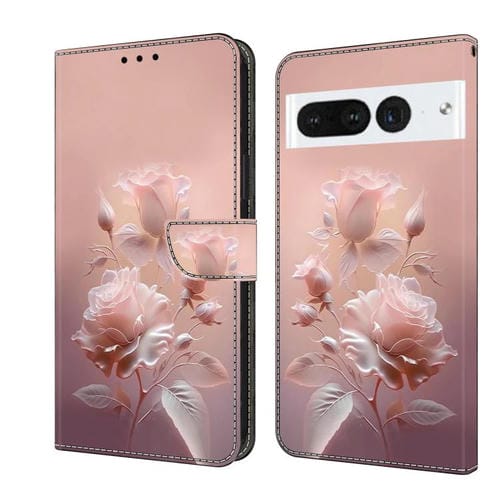 Funda de Cuero Pintada a Mano para Google Pixel 7 Pro con Diseño Flores de Cerámica