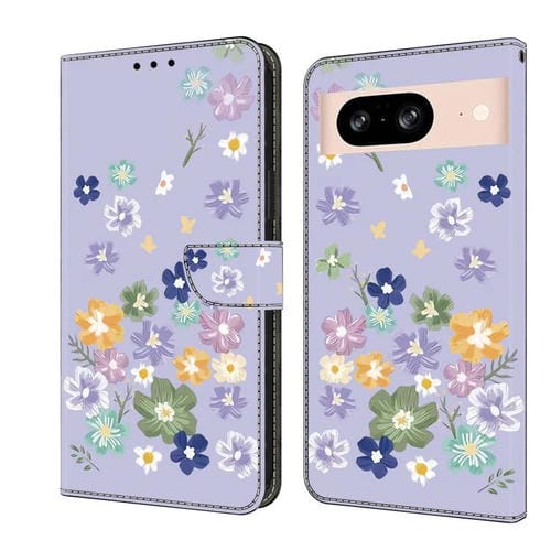 Funda de Cuero Pintada a Mano para Google Pixel 8 (Floral Morado)