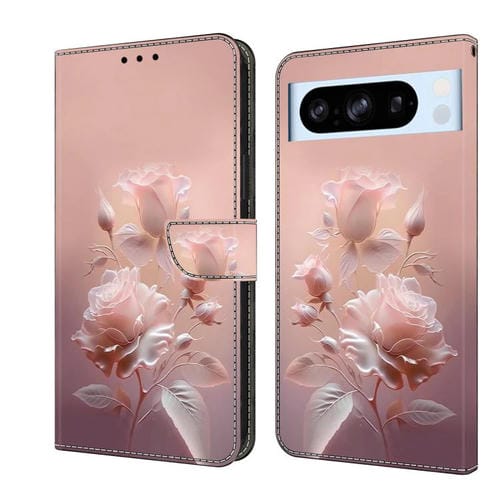 Funda de Cuero Pintada a Mano para Google Pixel 8 Pro con Diseño Flores de Cerámica