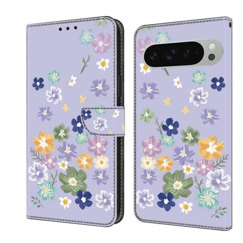 Funda de Cuero Pintada a Mano para Google Pixel 9 Pro XL (Floral Morado)