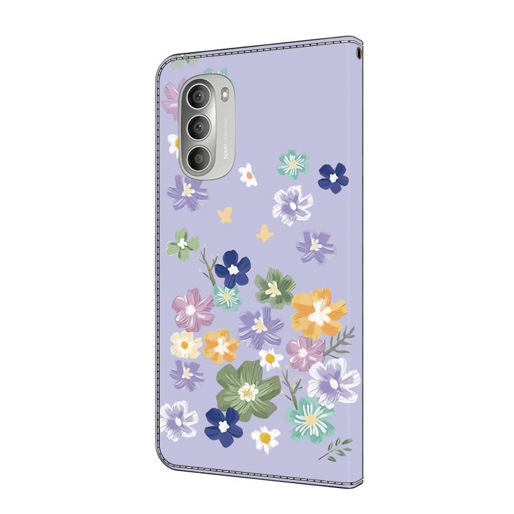 Funda de Cuero Pintada a Mano Motorola Moto G51 Protección Floral (Morado)