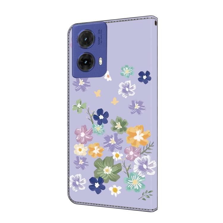 Funda de Cuero pintada a mano para Motorola Moto G85 (Floral Morado)