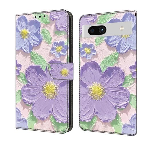 Funda de Cuero Pintada al Óleo para Google Pixel 8A (Flores Moradas)
