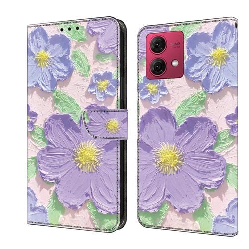Funda de Cuero Pintada al Óleo para Motorola Moto G84 (Flores Moradas)