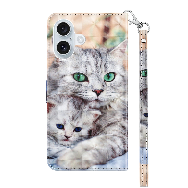 Funda de Cuero iPhone 16 Pintada En 3D Dos Gatos Enamorados