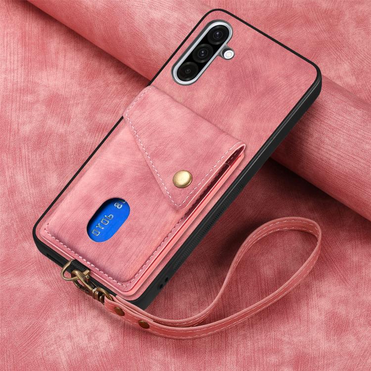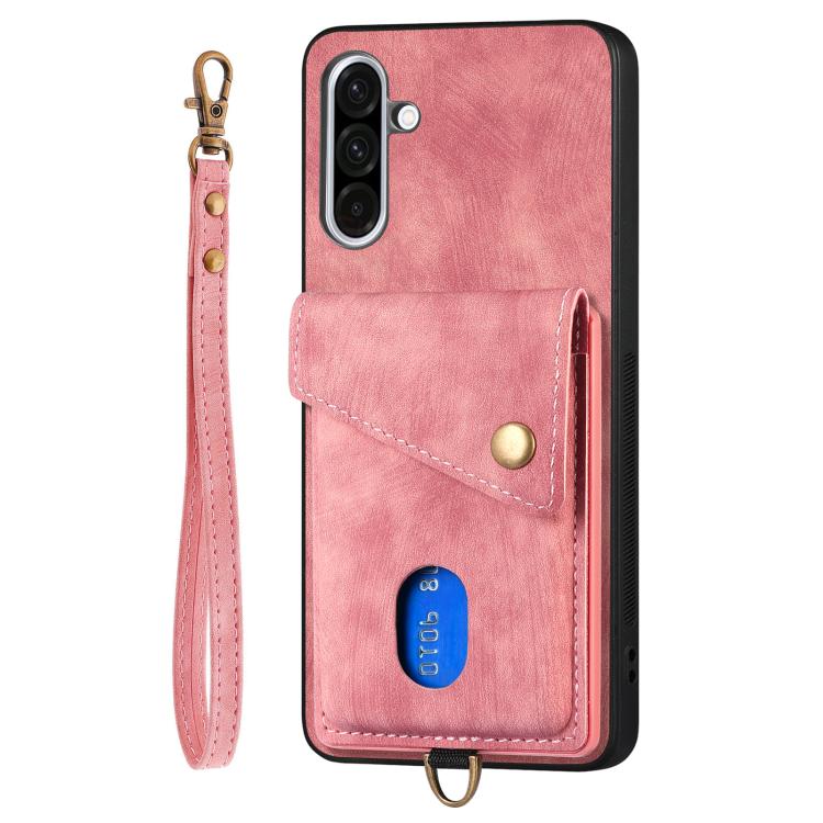 Funda de Cuero Plegable con Correa para Samsung Galaxy A36 con Tarjetero (Rosa)