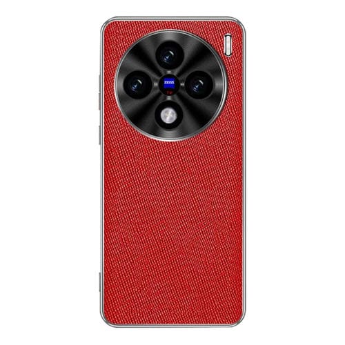 Funda de Cuero Pu con Textura Cruzada y Borde Plateado para Vivo X100S Pro (Rojo)