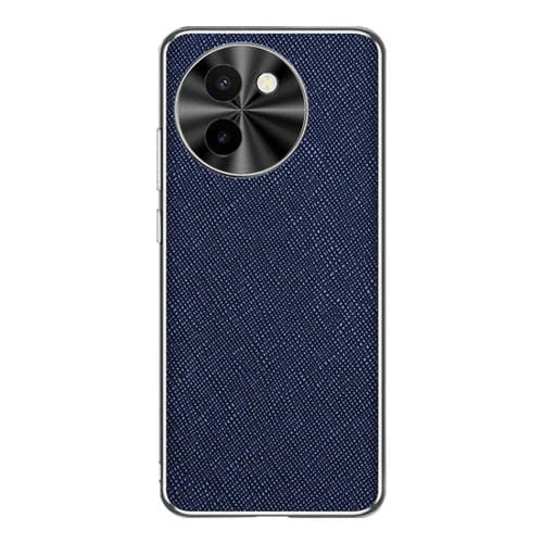 Funda de Cuero Pu con Textura Cruzada y Borde Plateado para Vivo Y200T (Azul Zafiro)