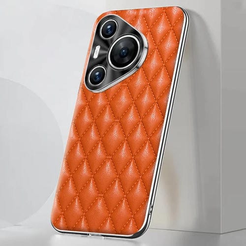 Funda de Cuero Pu con Textura Rómbica y Borde Plateado para Huawei Pura 70 Pro/70 Pro+ (Naranja)