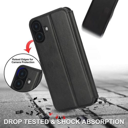 Funda de cuero PU + TPU a prueba de golpes para iPhone 17 (negra)