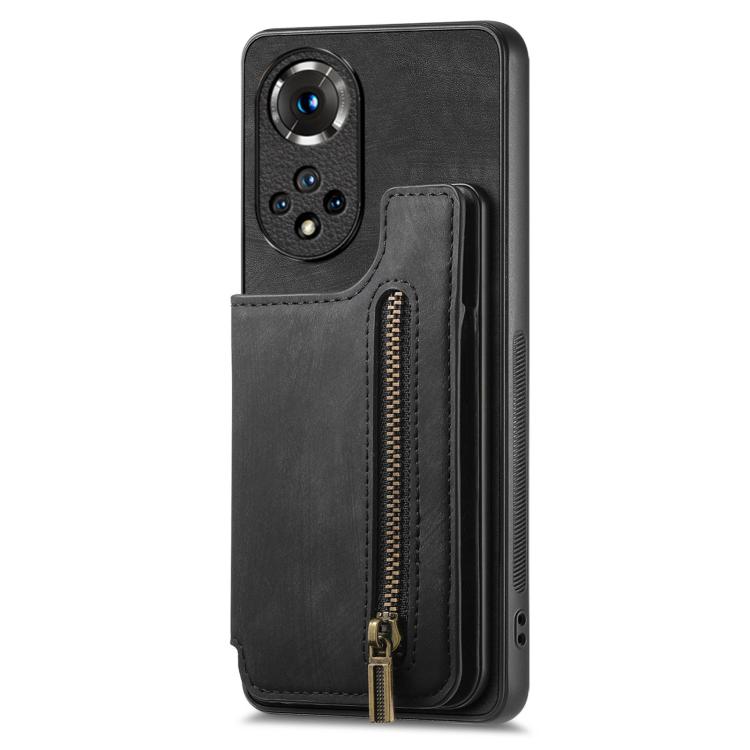Funda de Cuero Retro con Cremallera para Huawei Nova 9 (Negra)
