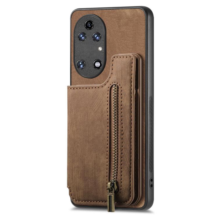 Funda de Cuero Retro con Cremallera para Huawei P50 (Marrón)