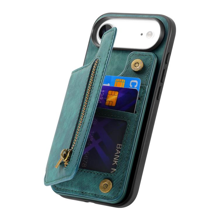 Funda de cuero retro con cremallera para iPhone Air (verde)