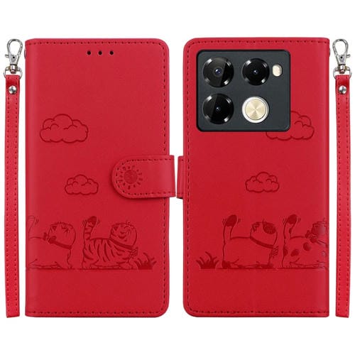 Funda de Cuero Rfid para Infinix Note 40 Pro 5G/4G con Diseño de Gatos (Rojo)
