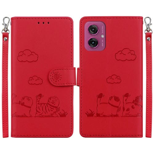 Funda de Cuero Rfid para Motorola Moto G55 con Diseño de Gatos (Rojo)
