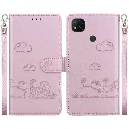 Funda de Cuero Rfid con Diseño de Gatos Lindos para Redmi 9C/9 Activ (Oro Rosa)