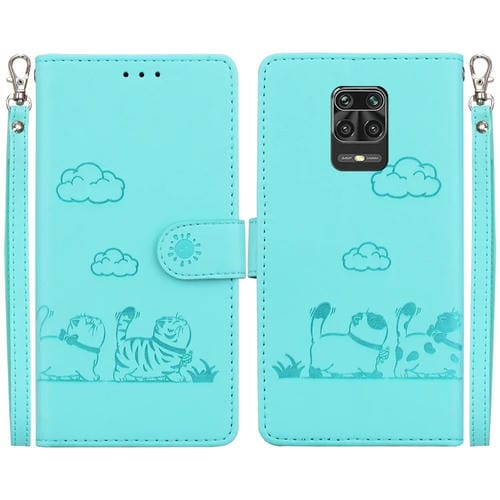 Funda de Cuero Rfid con Diseño de Gatos para Redmi Note 9 Pro (Verde)